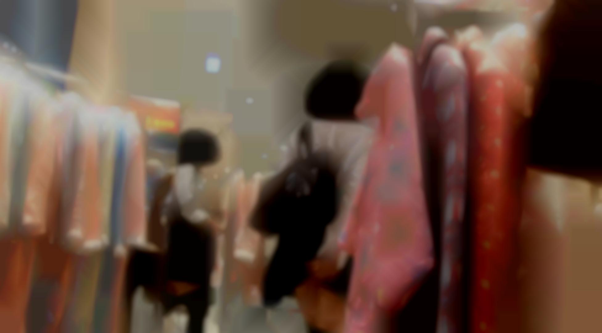 追跡して後ろからスカートめくりのいたずらです。