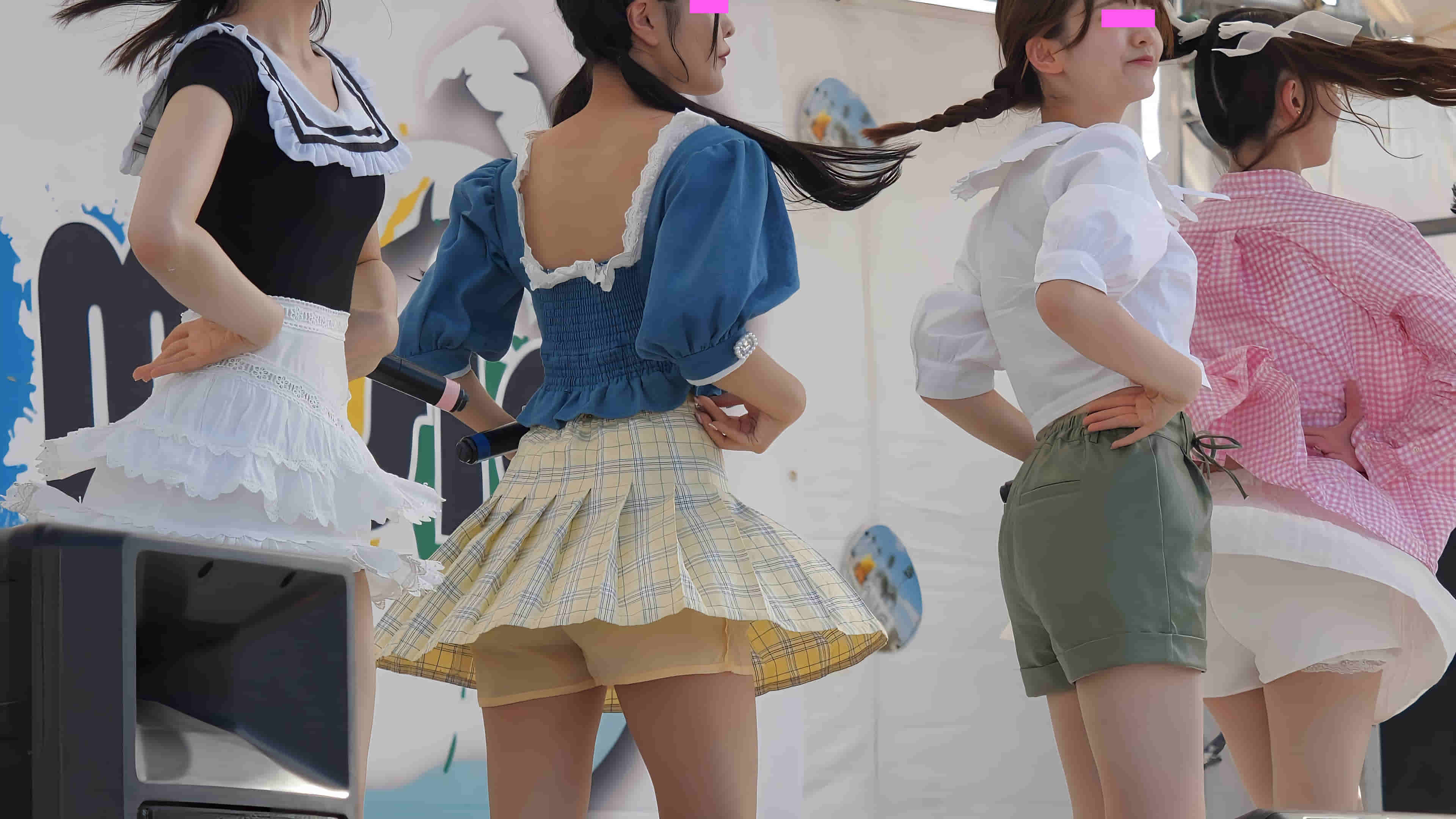 黄色のチェック柄やマリン風スカートが風に舞い、笑顔と熱気が画面いっぱいに広がります。