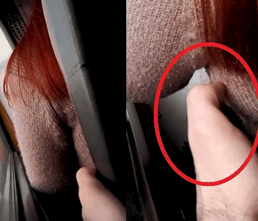 女性の状況を確認して、なんと前の座席の方に手を伸ばします。