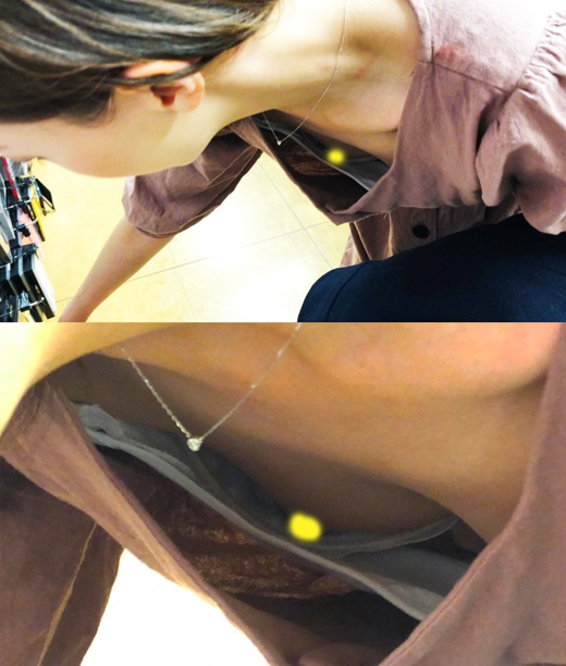 【ブラ浮き乳首丸見え】インナーしてても見えちゃった!!ヴィレ〇ンに彼氏同伴で来た美人お姉さんの胸チラ