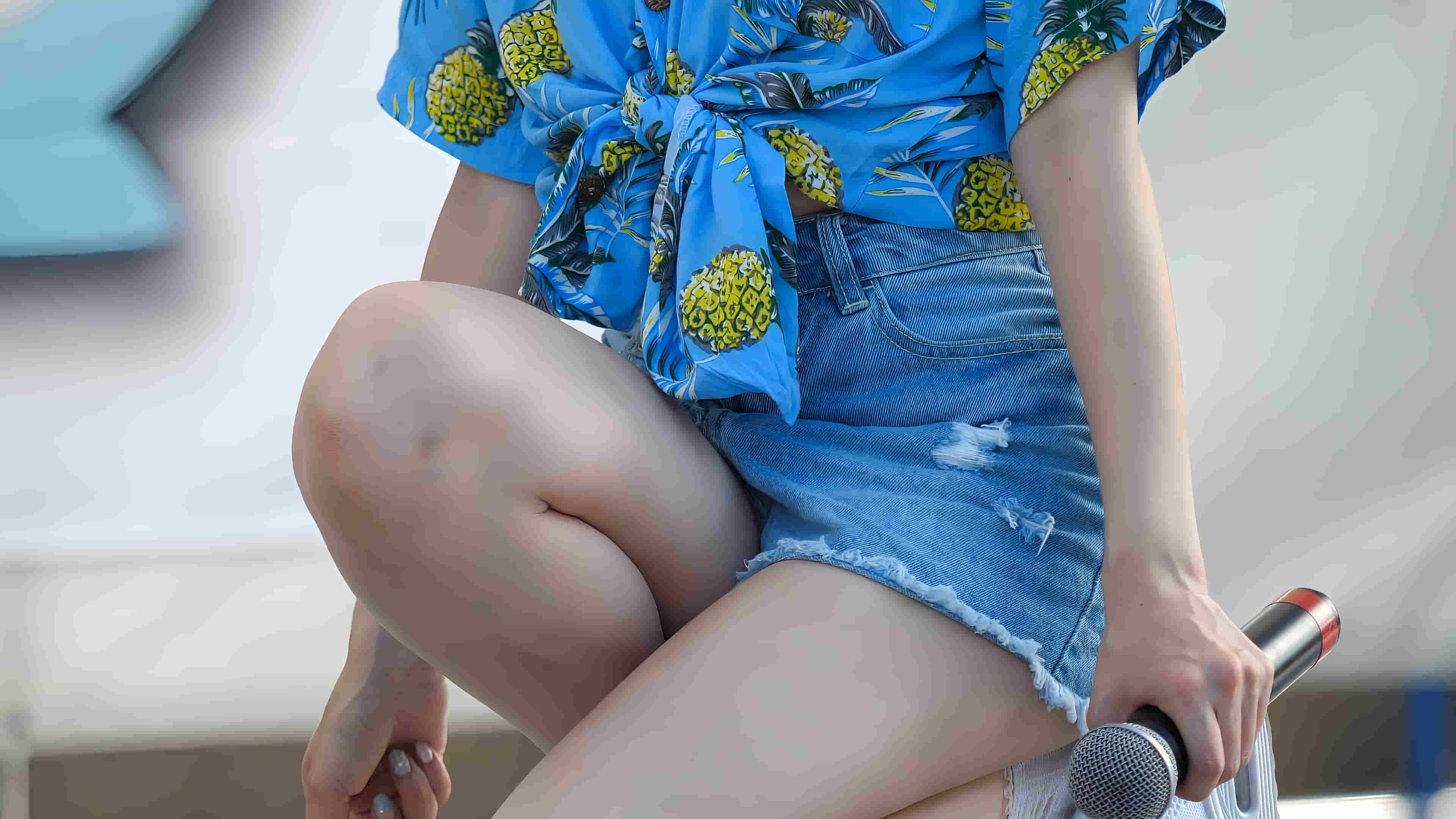 録。鮮やかな青空のもと、デニムショートパンツに身を包んだ彼女たちが爽やかに歌い踊る姿をハンデ