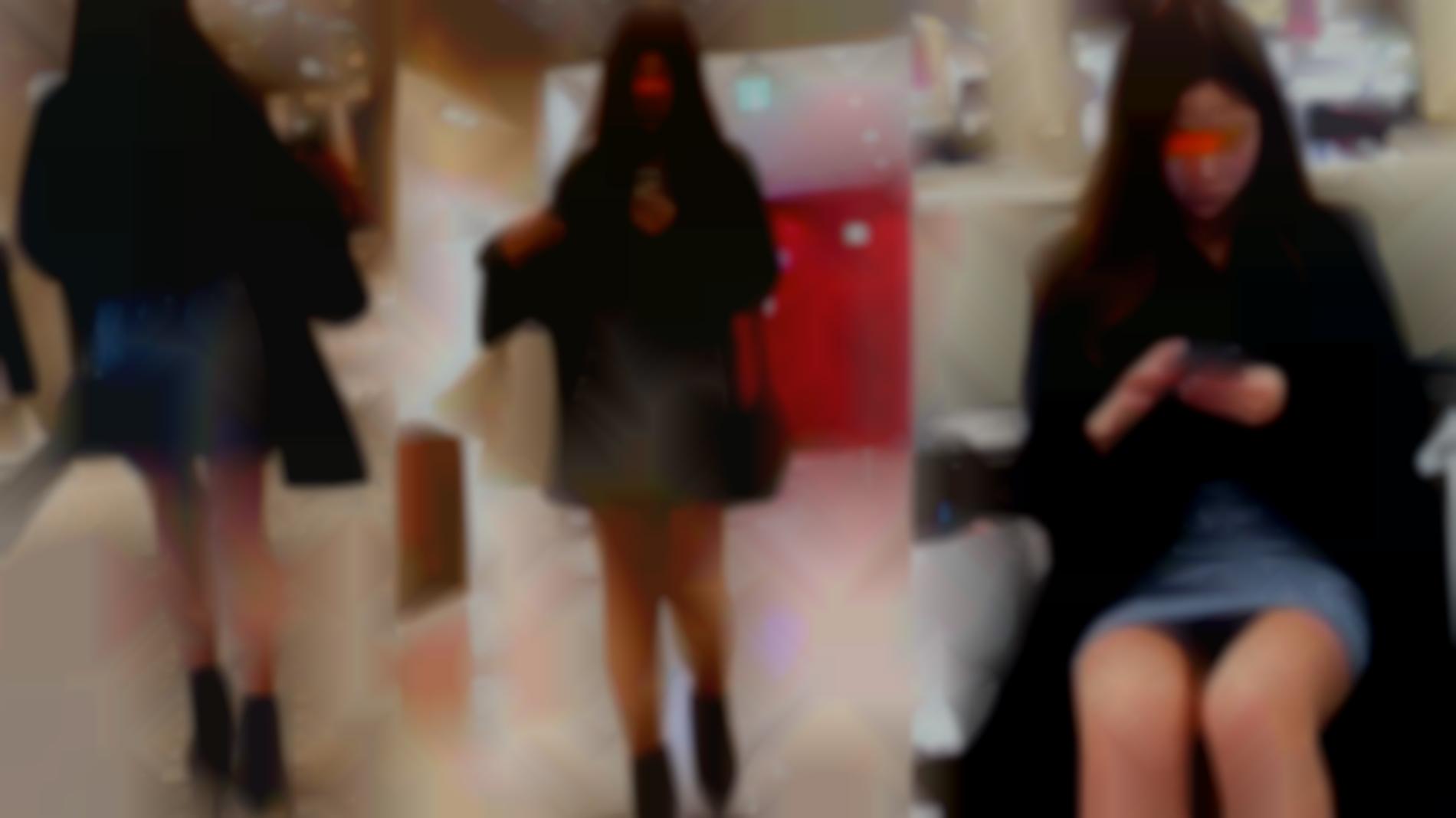 コートの下にタイトなミニスカを履いた美女を発見