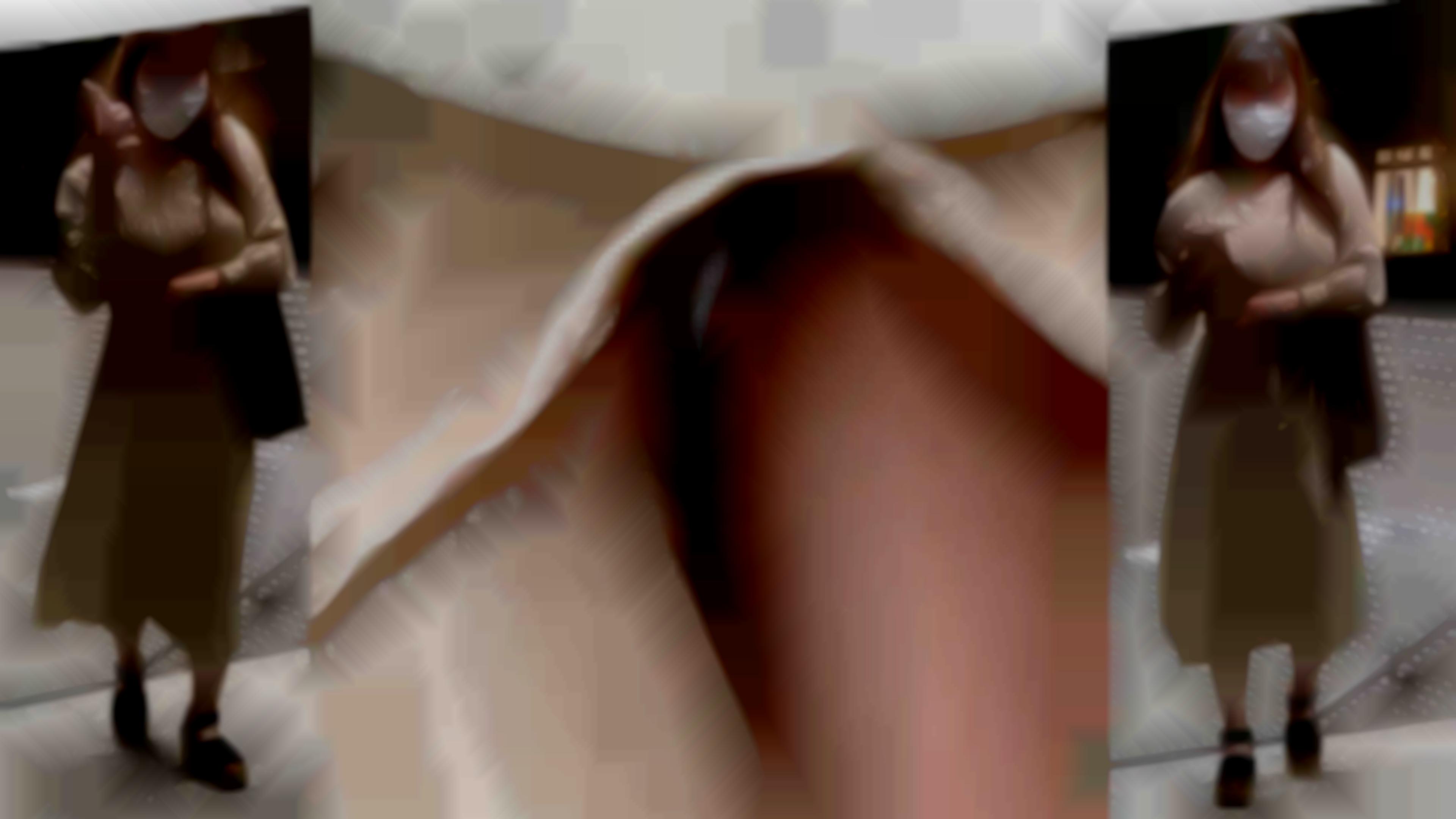 スレンダー黒髪清楚の美人お姉さん、ハイレベルなお姉さんを階段にてめくり。