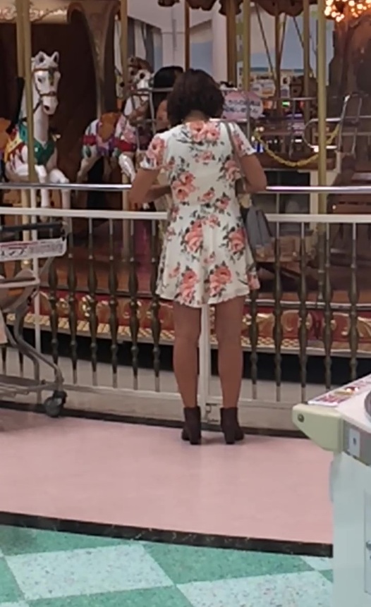 さすがに短パンを中に履いてるだろうけど客が大勢いる中、ダメ元で撮影。