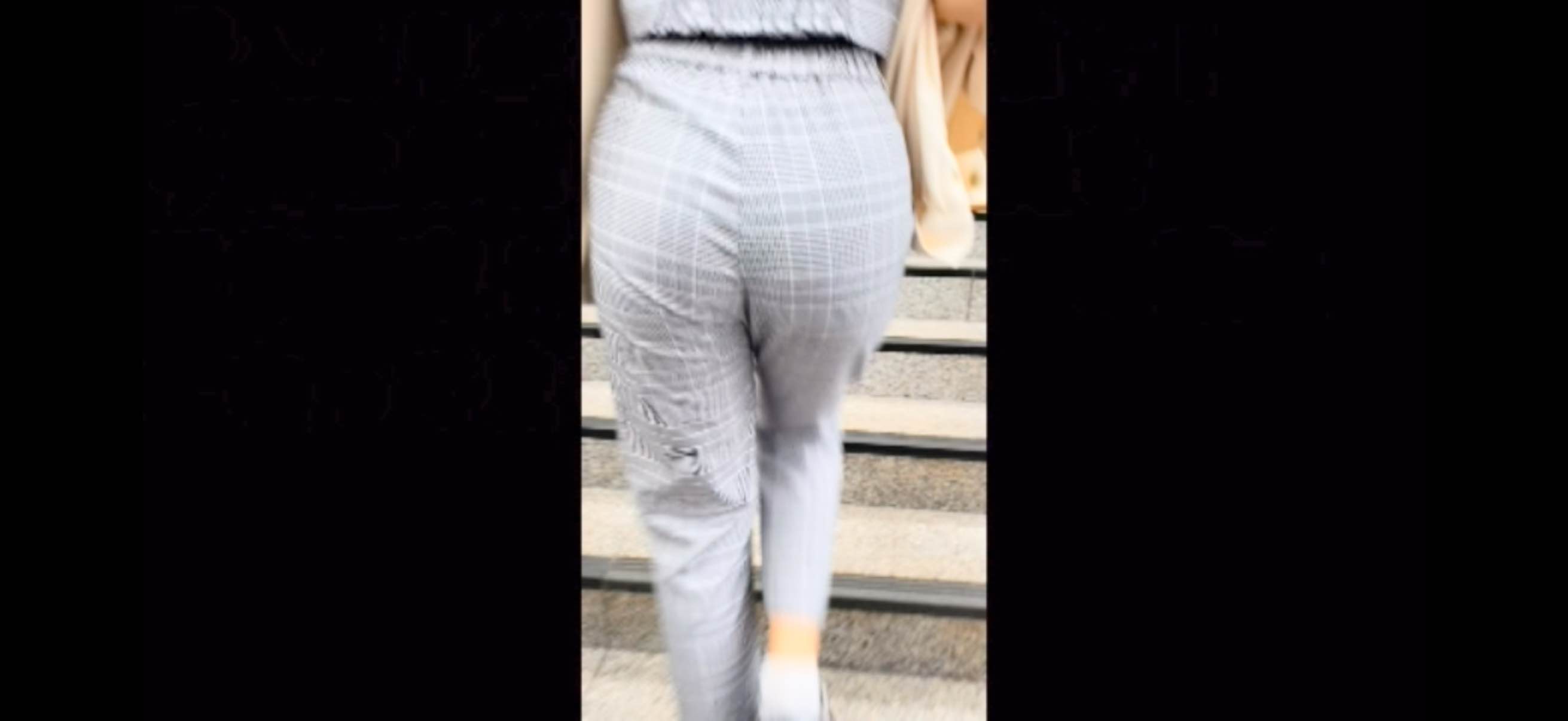 4人目は普通に道を歩いているだけでも尻が見える、恐ろしくミニ丈のスカートを下に引っ張りながら歩いており