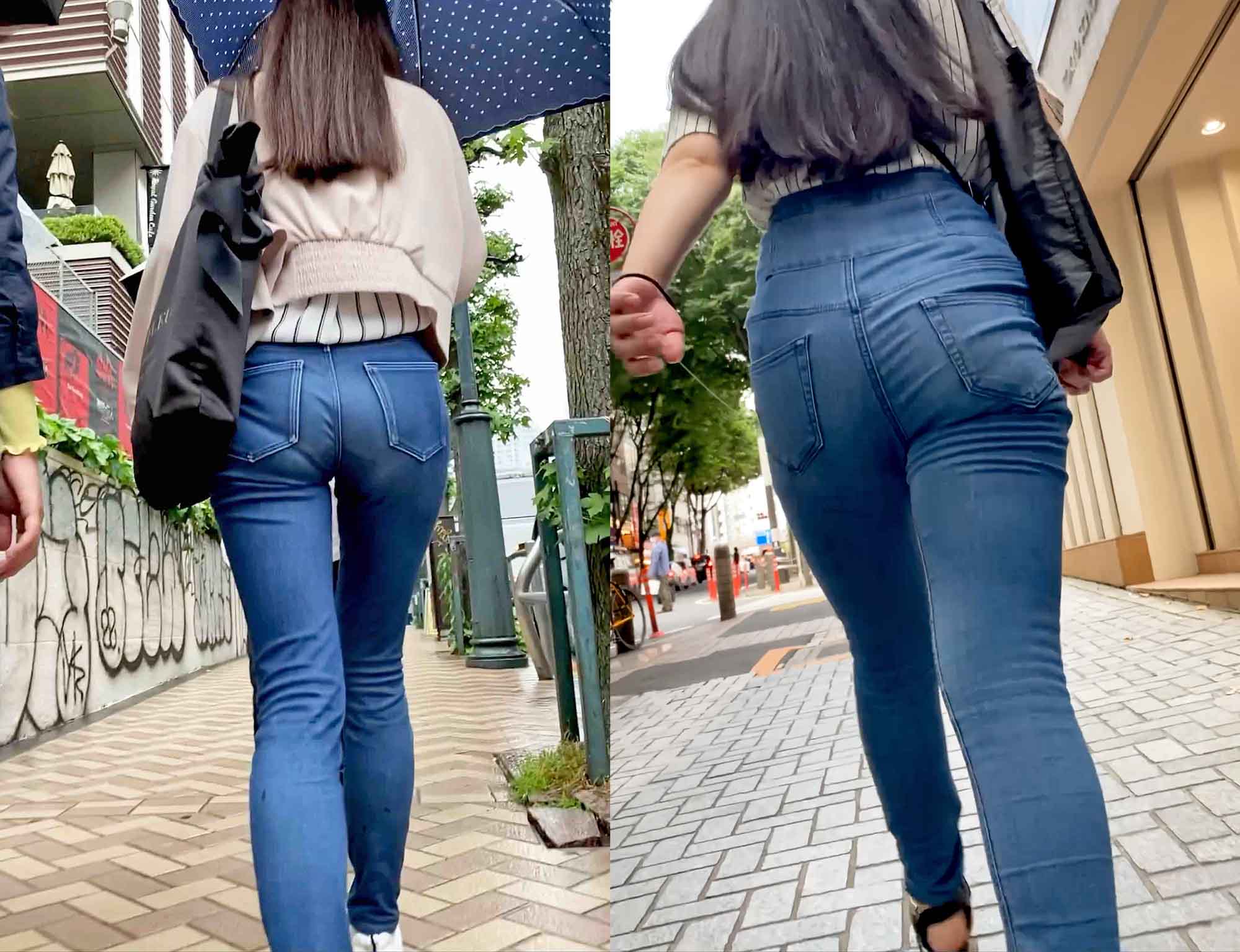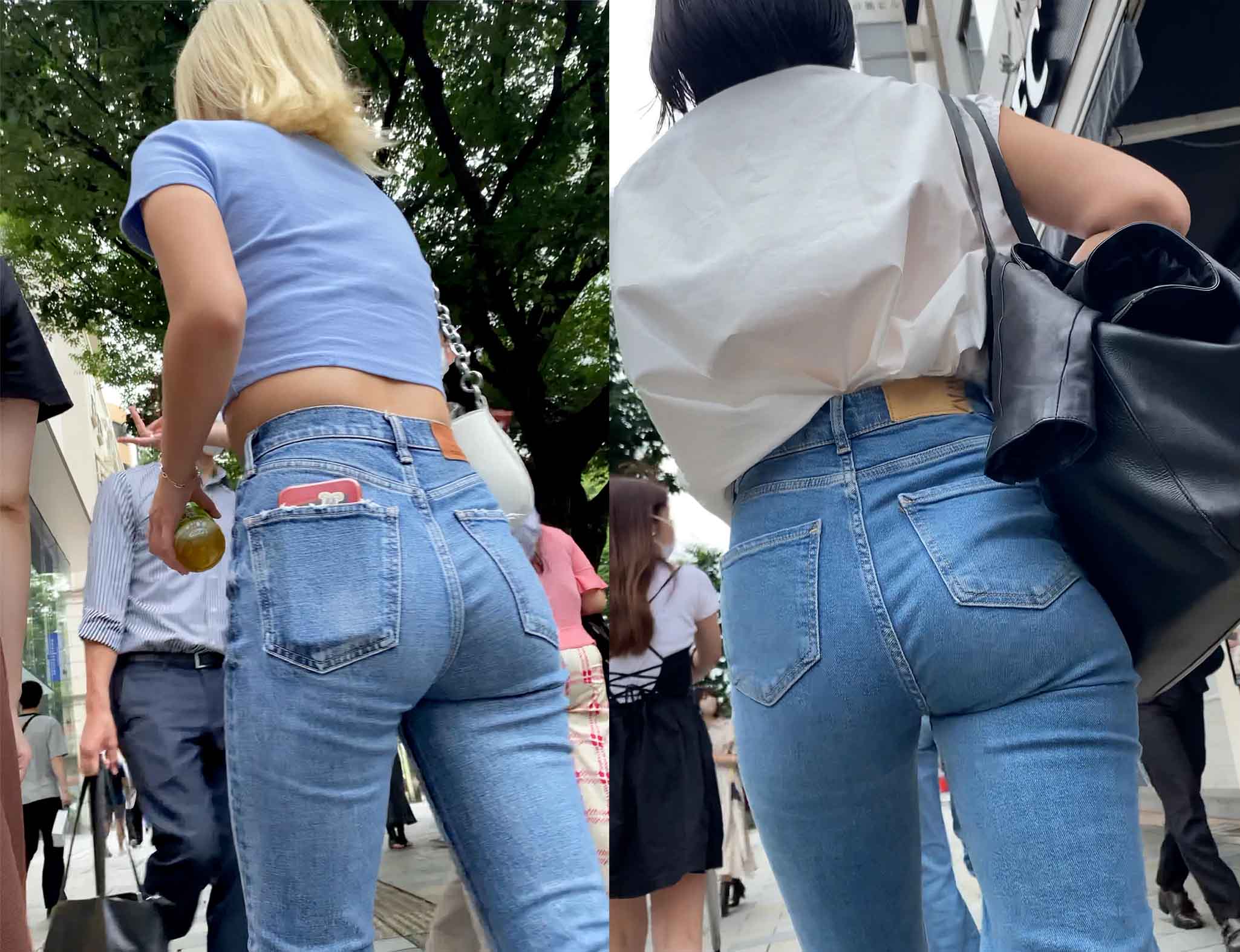 【再販】金髪ギャルと黒髪OLのデニム尻2連発!