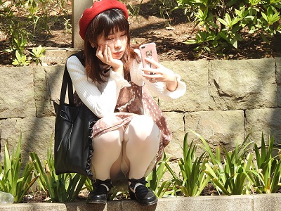 M字になってスマホをいじっている可愛いお姉さんが、パンスト越しの黒のパンティーを見せていたり・・・生まれ