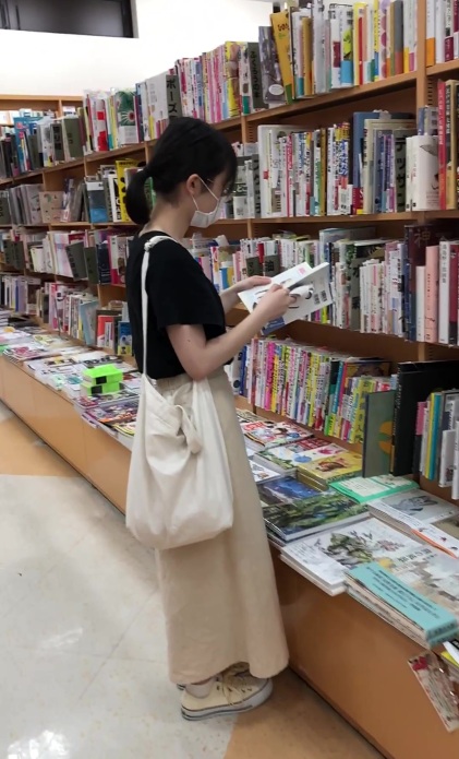 立ち読みに夢中のお姉さん。