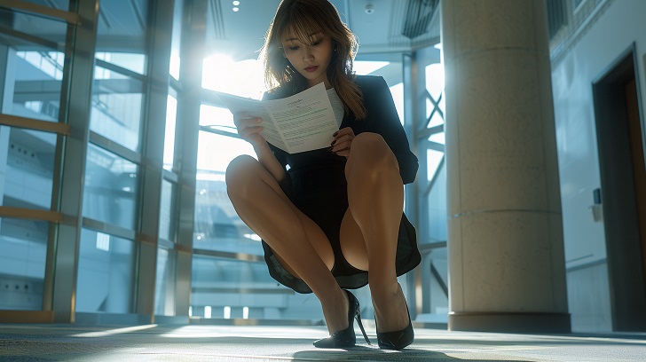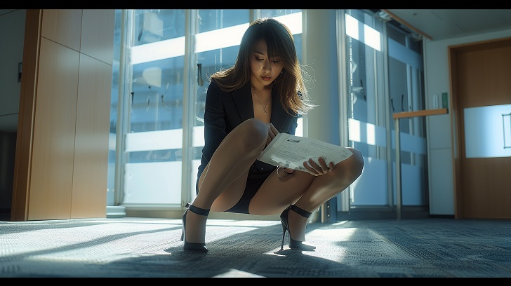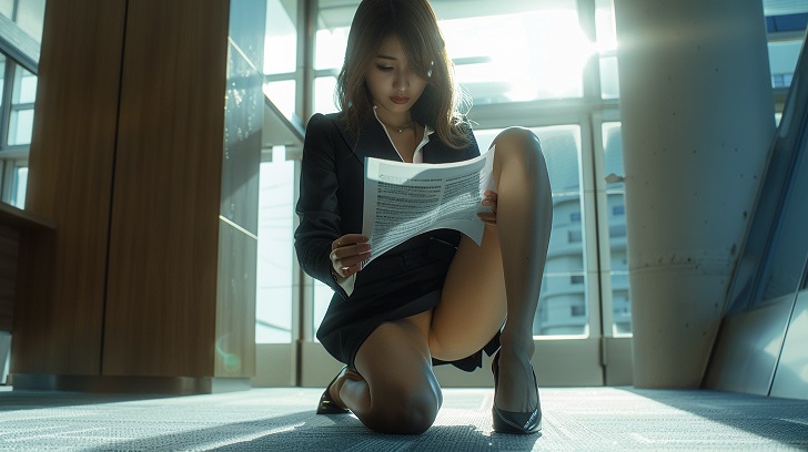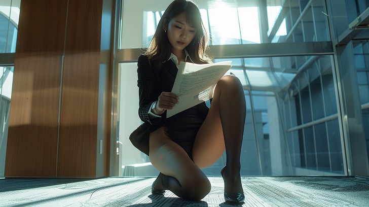 【AI美脚OL】美脚上司が仕事に夢中なあまり股間全開パンチラモーメント