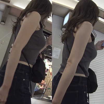 巨乳追尾記録5*エロいお姉さんのノースリーブの中で乱れる軟体乳を横から粘着隠し撮り‼
