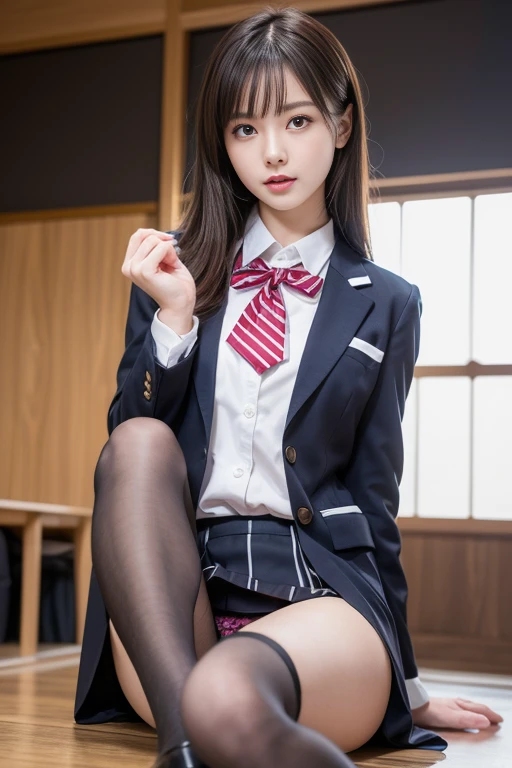 カメラに向かい、正面、後ろ姿、座り姿勢でのパンティーを見せている