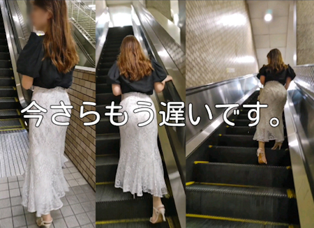 エスカ手前でお姉さんの後ろに付くべく急に歩く速度変え
