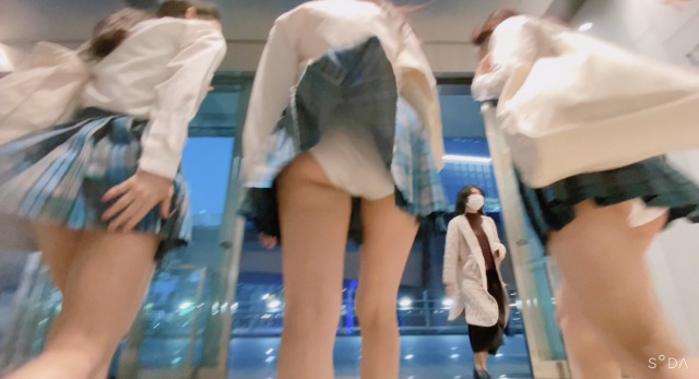 青チェックのスカートの●K達です。