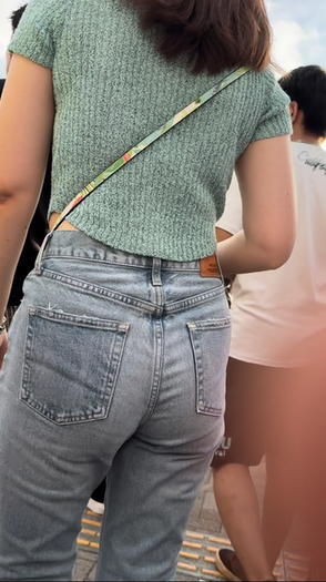 1人目(表題)はグリーンのトップスに履き込まれたマウジーのデニムのお姉さん