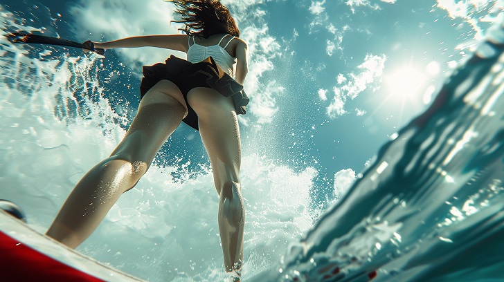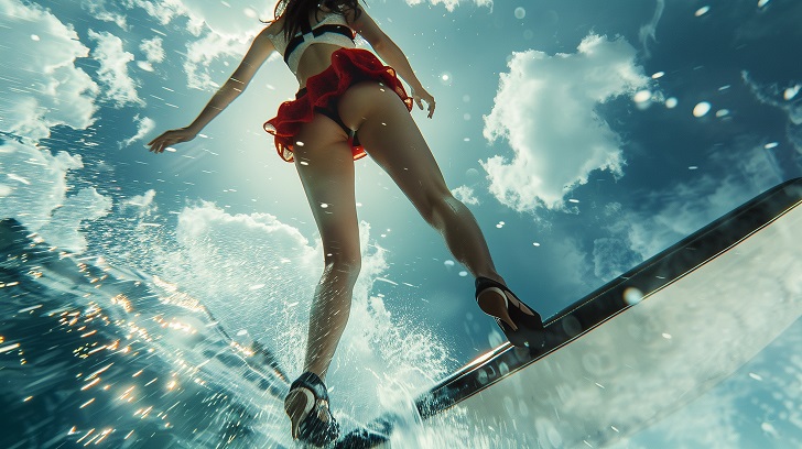 【AI美脚CA】ミニスカでマリンスポーツを楽しむ美脚CAたち