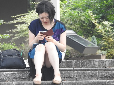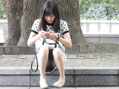 スマホに夢中・・・お座りお姉さん発見88!!大変です!!パンツが見えてますよ