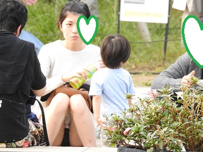 お弁当を食べているお姉さん発見95!!大変です!!パンツが見えてますよ
